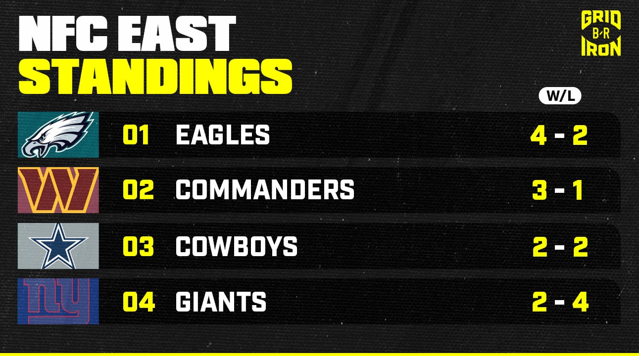 Jalen Hurts y los Philadelphia Eagles tuvieron una dura derrota como visitantes el jueves por la noche, cayendo 34-17 ante los New York Giants para su segunda derrota consecutiva y un récord de 4-2.